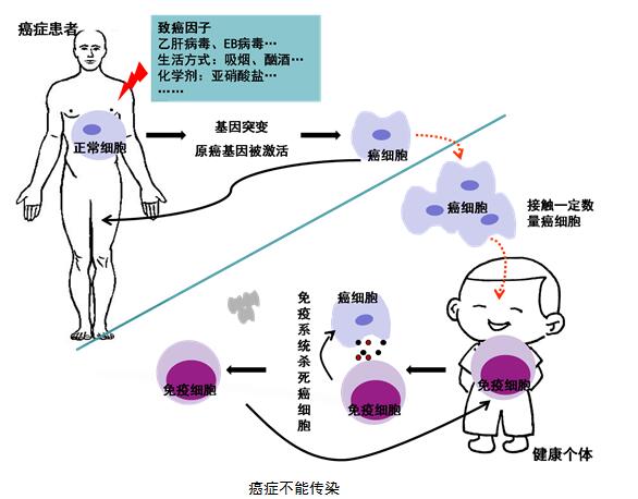 对于健康人群而言,即便他接触一定数目的癌细胞也不会有事,因为他的免疫系统会迅速把接触的癌细胞统统清除掉,这是人类进化到金字塔顶端所得到的得天独厚的优势。