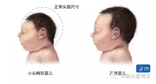 但是,孕妇感染寨卡病毒可能会引起胎儿发生小头畸形。2015年上半年,巴西暴发寨卡病毒疫情以来,新生儿小头畸形的发生率增长了近20倍,而且小鼠实验也表明寨卡病毒可导致胚胎“脑部”神经元大量死亡,造成脑腔变大、脑皮层变薄,表现为典型的小头畸形。