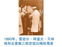 1890年,爱密尔·阿道夫·贝林格(Emil,Adolf,von,Behring)和北里柴三郎 发现白喉抗毒素