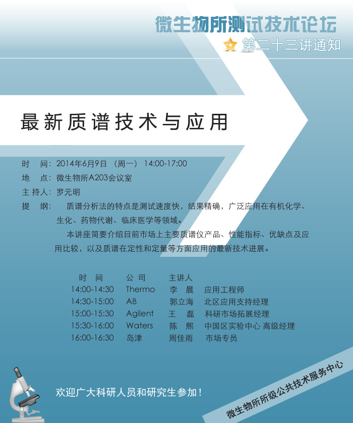 关于“微生物所测试技术论坛”第二十三讲的通知