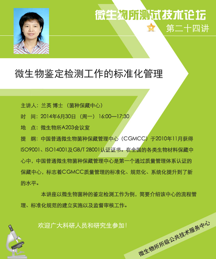 关于“微生物所测试技术论坛”第二十四讲的通知