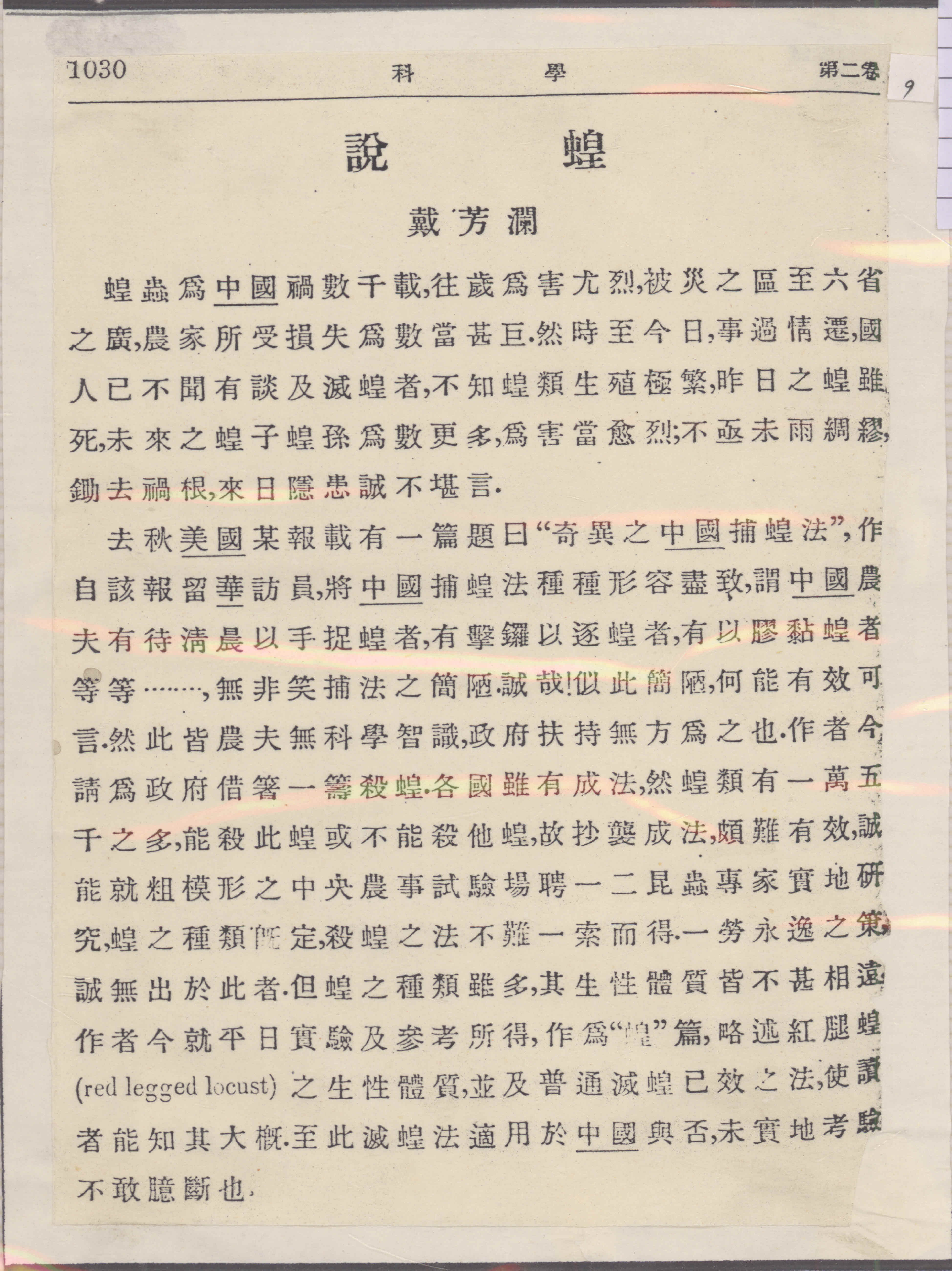右:戴芳澜院士手稿