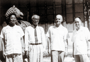 右:1957-阎逊初(左1)、方心芳(右1)与波兰的库里洛维奇(右2)和日本的住木谕介两位微生物专家合影