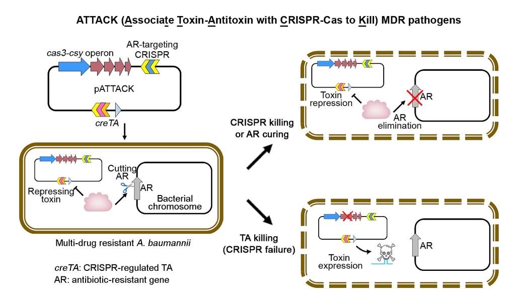 图1 ATTACK策略通过联用CRISPR和TA实现双重杀菌