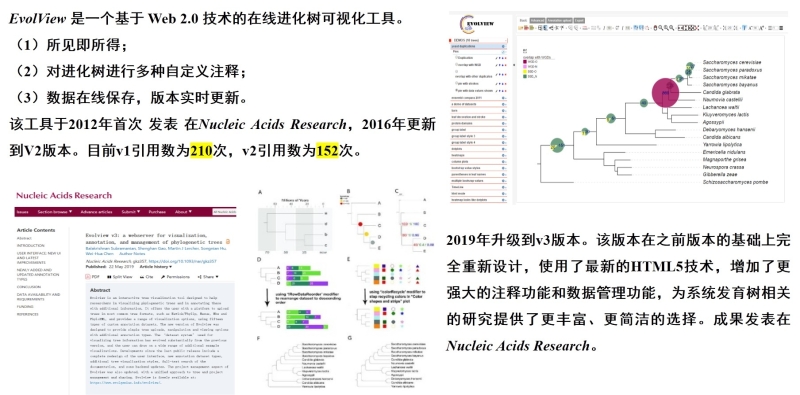 5.He, Z., H. Zhang, S. Gao, M. J. Lercher, W. H. Chen* and S. Hu*, Evolview v2: an online visualization and management tool for customized and annotated phylogenetic trees. Nucleic Acids Res, 2016. 44(W1): p. W236-41.