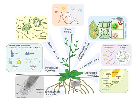 2020年9月8日,美国科学院院士、杜克大学董欣年教授,中科院遗传与发育生物学研究所周俭民研究员,美国加州大学戴维斯分校Gitta Coaker教授,中科院微生物研究所张杰研究员合作在MOLECULAR PLANT在线发表题为“Plant Immune Mechanisms: from Reductionistic to Holistic Points of View”的展望综述论文。论文系统总结了植物多层次的免疫和防御机制研究进展,包括植物细胞外免疫,如气孔免疫、根际免疫和胞间免疫;植物细胞表面免疫受体和胞内免疫受体介导的免疫识别和信号传递、不同类型免疫受体之间的交叉调控;非典型抗性基因介导的防御反应、维管束免疫反应、植物组织和细胞免疫反应异质性;植物免疫的翻译调控、生物钟与植物免疫调控等。