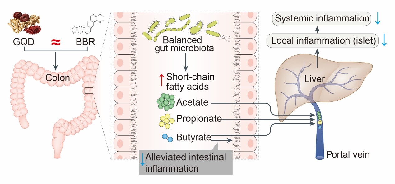 近日,中科院微生物所王军研究组与中国中医科学院广安门医院仝小林院士团队联合在Genomics, Proteomics & Bioinformatics期刊在线发表了题为“Antidiabetic Effects of Gegen Qinlian Decoction via the Gut Microbiota Are Attributable to Its Key Ingredient Berberine”的研究论文,发现小檗碱可作为中药复方葛根芩连汤中调节肠道菌群治疗2型糖尿病的关键活性成分,并阐明了其可能的作用机制。