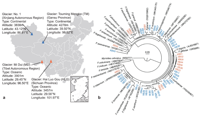 中国科学院微生物研究所东秀珠研究员、辛玉华正高级工程师和周宇光正高级工程师为论文的共同通讯作者,刘庆高级工程师、李伟助理研究员、中科院武汉病毒所刘翟研究员为共同第一作者。该研究是继菌保中心在冰川稀有类群Cryobacterium耐低温适应性进化机制的发现后,又一重要进展 (Liu et al., 2020),得到了国家自然科学基金委重大研究计划和面上项目的支持。