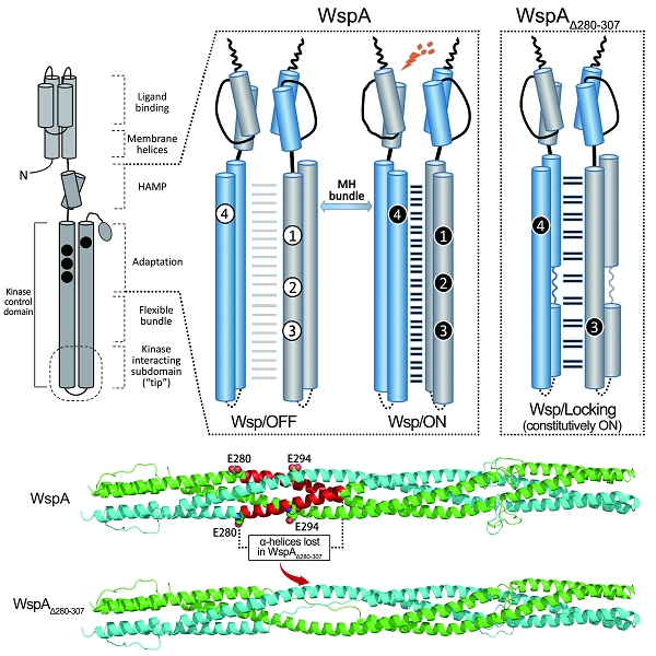 Wsp系统示意图 WspA第280-307位氨基酸残基片段缺失导致二级信使水平升高