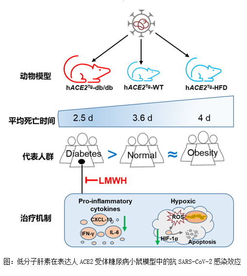 日前,中国科学院微生物研究所毕玉海研究团队和上海交通大学医学院附属瑞金医院王计秋团队合作构建hACE2糖尿病小鼠、肥胖小鼠模型,研究SARS-CoV-2对两种模型的感染致病特征,探索SARS-CoV-2对糖尿病患者的可能感染致病机制及抗凝治疗(肝素)的治疗效果,研究成果在线发表于《Zoological Research》(Anti-infection effects of heparin on SARS-CoV-2 in a diabetic mouse model)。该研究提示了低分子肝素和胰岛素联合用药在抗SARS-CoV-2感染糖尿病小鼠过程中发挥保护作用,为具有糖尿病基础病的新冠肺炎患者的治疗提供了科学依据。