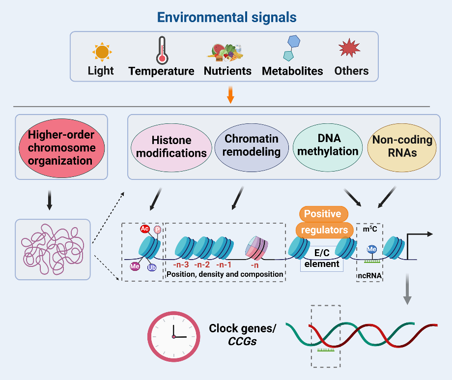 图1. 环境信号对生物钟基因的表观遗传调控