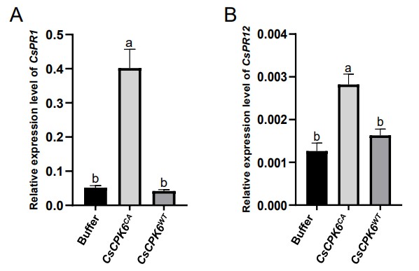 图1 CsCPK6CA瞬时过表达显著诱导柑橘防御相关基因激活