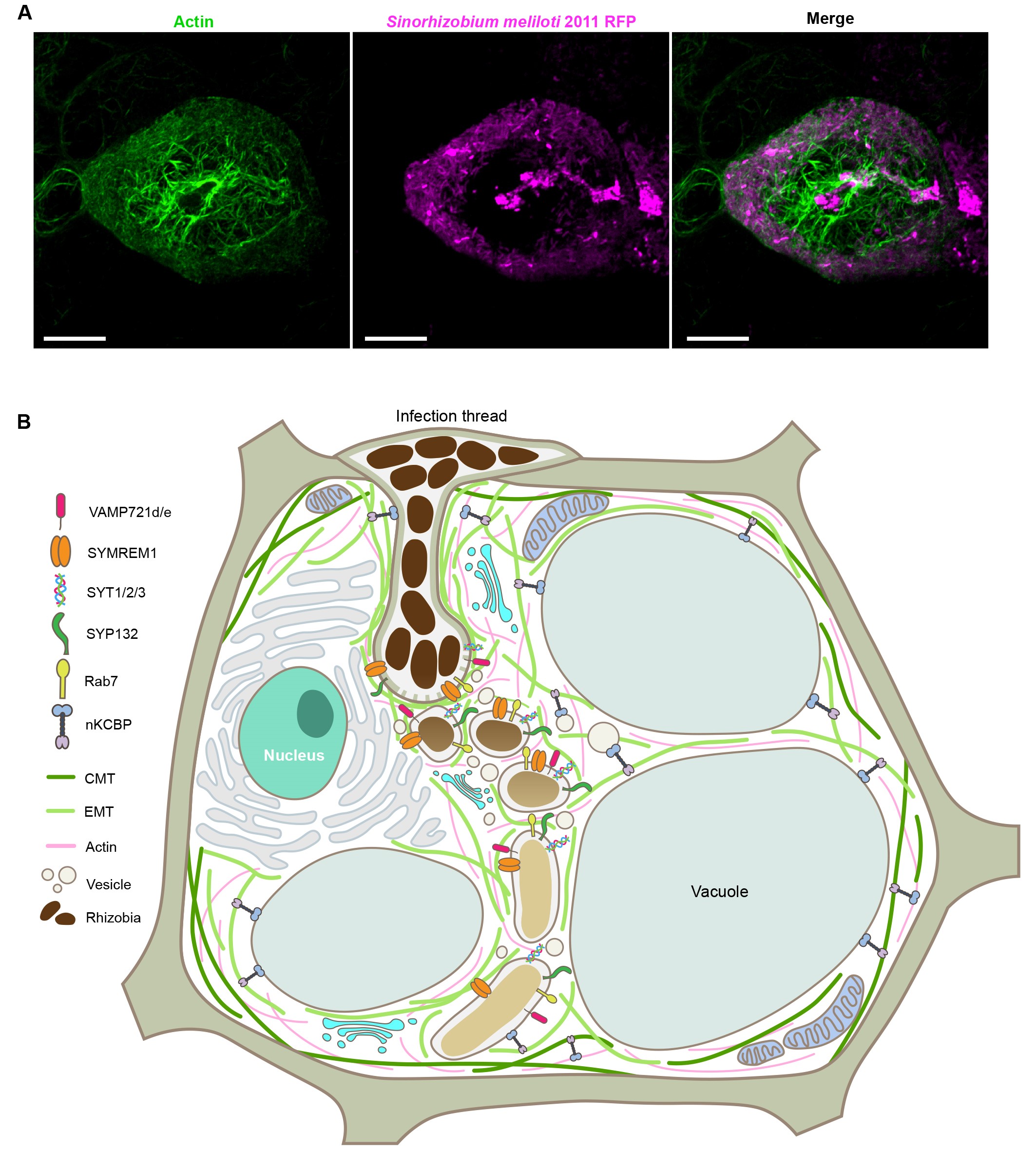 图3 根瘤菌内共生过程中细胞骨架的动态与调控
