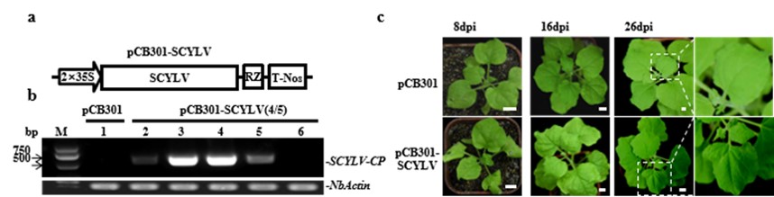 甘蔗是重要的经济作物,也是糖和生物能源生产的主要原材料。甘蔗黄叶病毒是引起甘蔗黄叶病的主要病原体之一,可以影响甘蔗的发育、叶绿素含量、糖转运和蔗糖积累水平,严重时可致使甘蔗减产20%-50%。由于缺乏病毒遗传操作系统,以往研究甘蔗黄叶病毒需要通过蚜虫接种甘蔗黄叶病毒,难以排除其他病原体或昆虫媒介的干扰,导致研究进展缓慢。