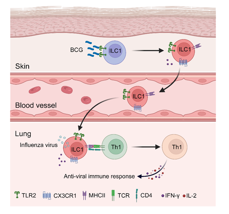 图1. BCG诱导的ILC1通过皮肤-肺轴激活肺部Th1细胞发挥抗感功能