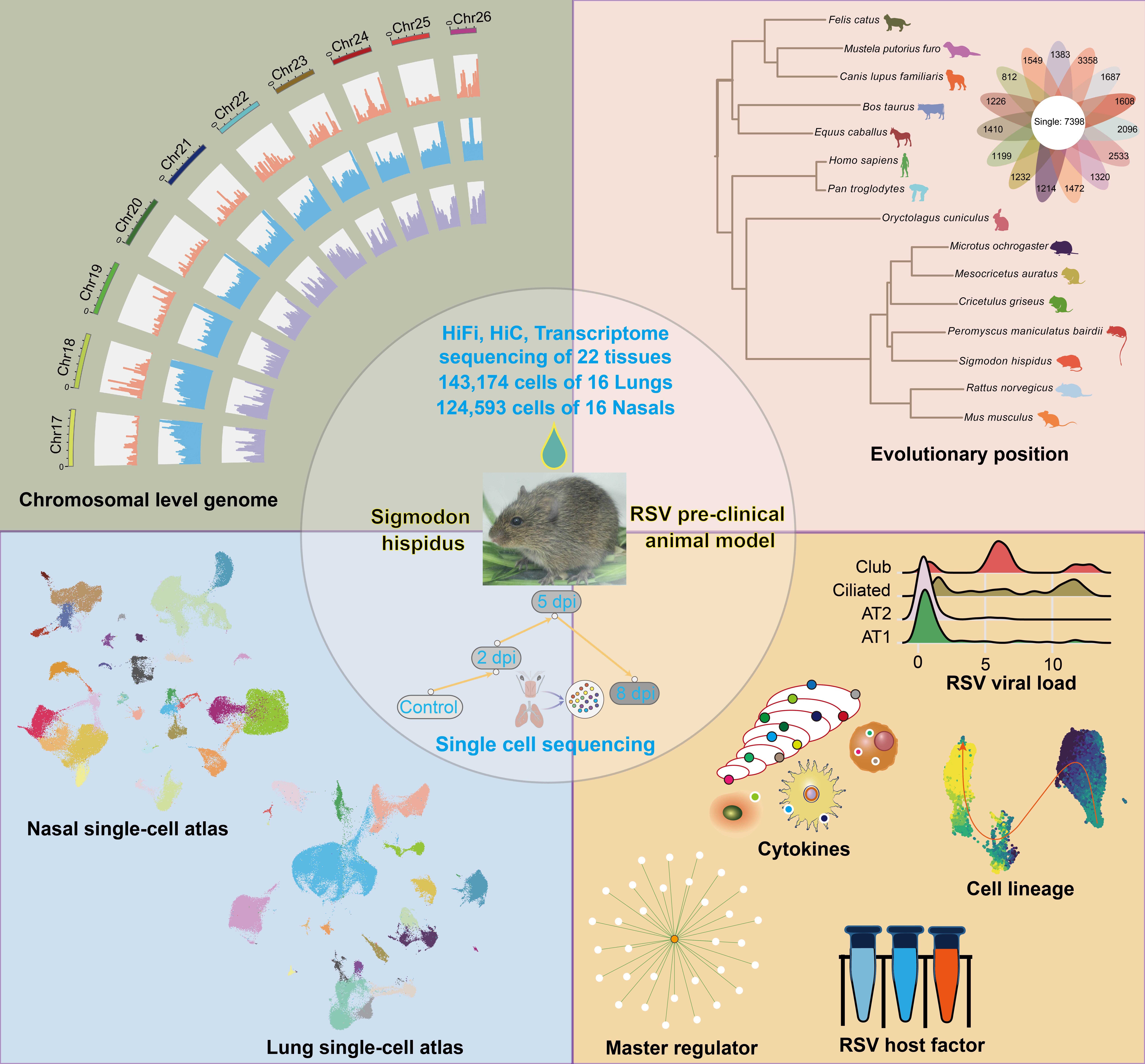 图1 基于基因组和动态单细胞转录组解析棉鼠作为RSV感染模型的遗传基础
