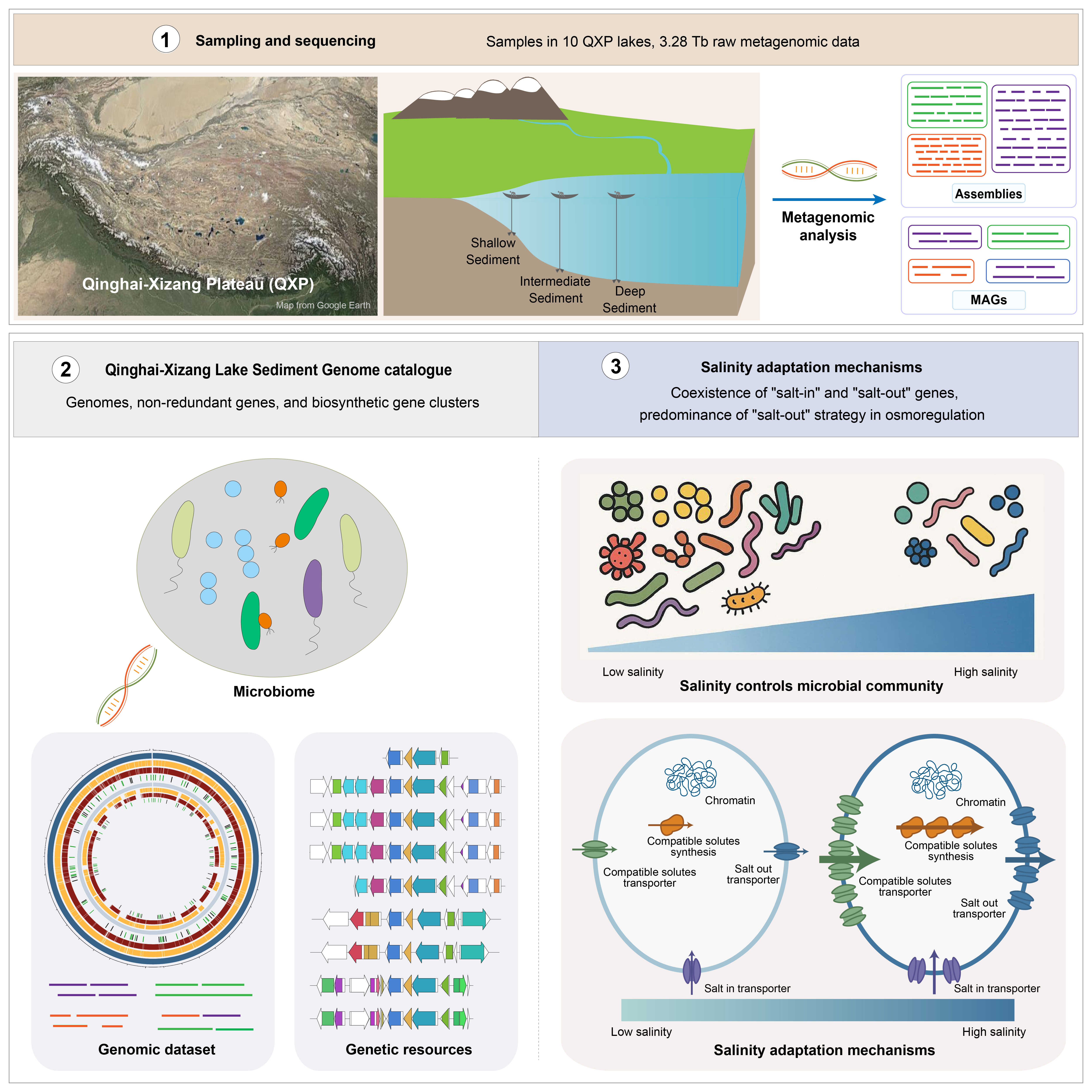 近日,中国科学院微生物研究所蔡磊团队绘制了青藏高原湖泊沉积物微生物的基因图谱,并揭示了其耐盐机制。相关研究成果以“A deep metagenomic atlas of Qinghai-Xizang Plateau lakes reveals their microbial diversity and salinity adaptation mechanisms”为题,发表在Cell Reports上。