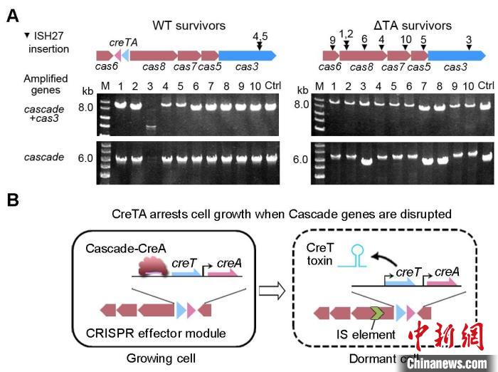 CRISPR-Cas系统与CreTA毒素-抗毒素系统的互作机制。中科院微生物所 供图