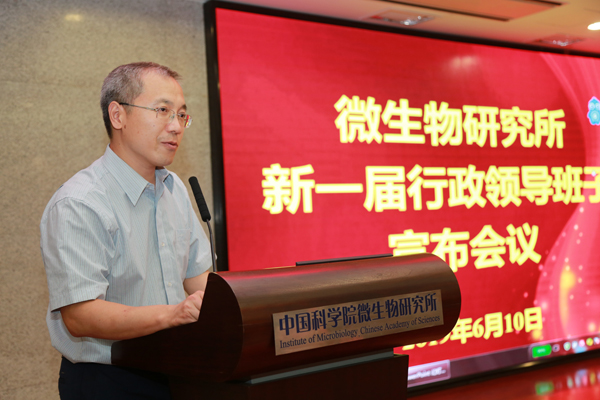 马扬首先宣布了中科院党组关于微生物所新一届领导班子的任职决定:钱韦、李俊雄、向华同志任副所长,杨永峰同志任党委副书记、纪委书记。钱韦副所长作为法定代表人牵头负责研究所行政工作。