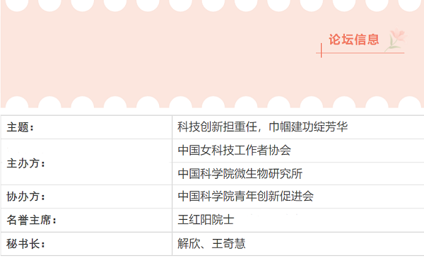 为进一步贯彻落实《关于实施科技创新巾帼行动的意见》,加强女性科技工作者的交流与合作,在建设科技强国中勇挑重任,展现巾帼担当,展现我国女科技工作者志存高远、信念坚定的真挚情怀,以推进科技创新巾帼行动的实际行动践行“两个维护”,中国女科技工作者协会联合中国科学院微生物研究所和中国科学院青年创新促进会,于2022年3月8日召开“女科技工作者发展与创新—长缨论坛”。