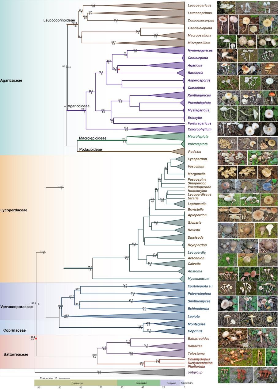 广义蘑菇科主要类群的系统发育及演化时间格局