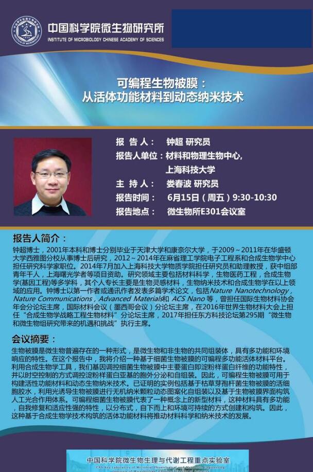 工业室学术报告:可编程生物被膜:从活体功能材料到动态纳米技术