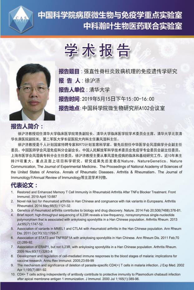 病原室学术报告:强直性脊柱炎致病机理的免疫遗传学研究
