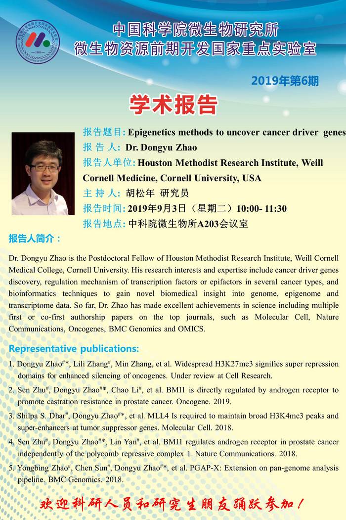 资源室学术报告(2019年第6期):Epigenetics methods to uncover cancer driver genes