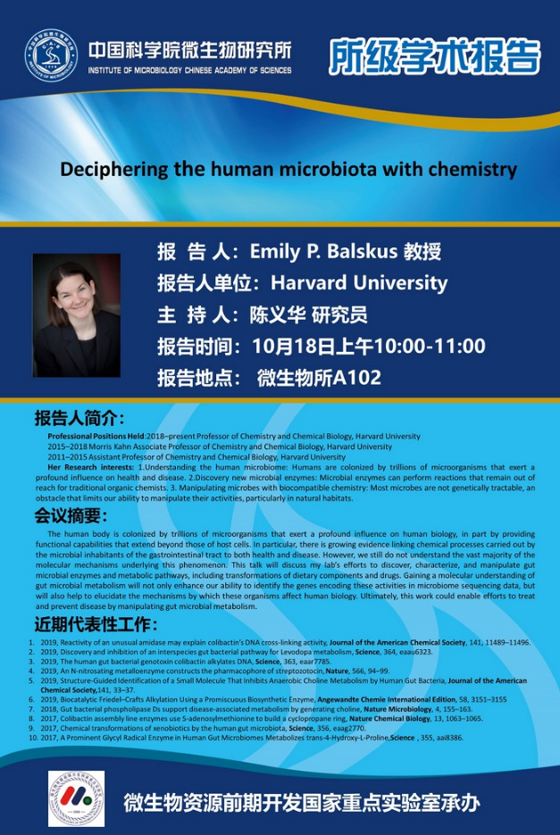 所级学术报告:Deciphering the human microbiota with chemistry(由资源室承办)
