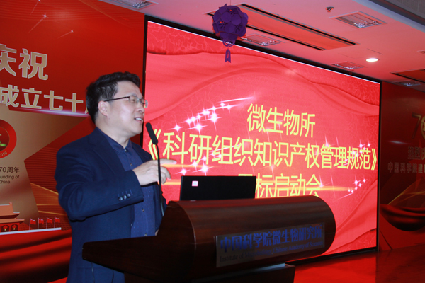 2019年9月29日,中国科学院微生物研究所召开了《科研组织知识产权管理规范》贯标工作启动会。向华副所长、各科研单元负责人、知识产权联络员、科研管理骨干、职能部门负责人、贯标组成员等90余人参加了会议。中科院科技促进发展局知识产权管理处田永生处长、中科院科技战略咨询研究院刘海波研究员、原大化所资产公司知识产权高级经理刘海燕应邀出席本次会议并授课。
