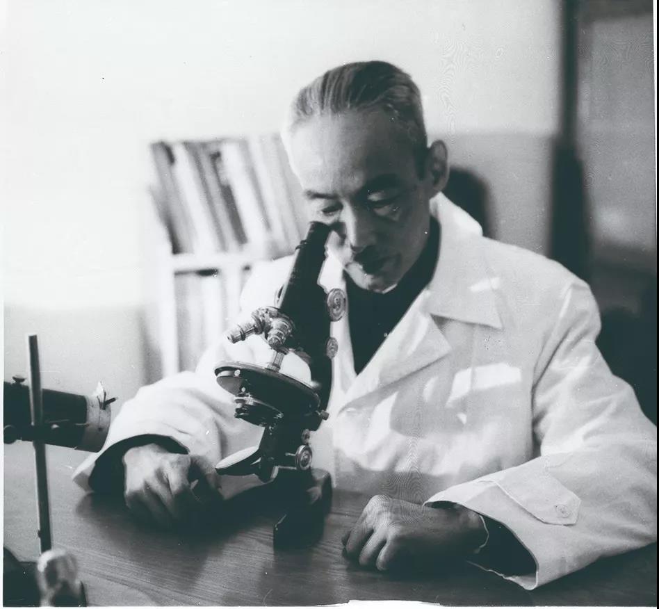 戴芳澜在显微镜前开展研究