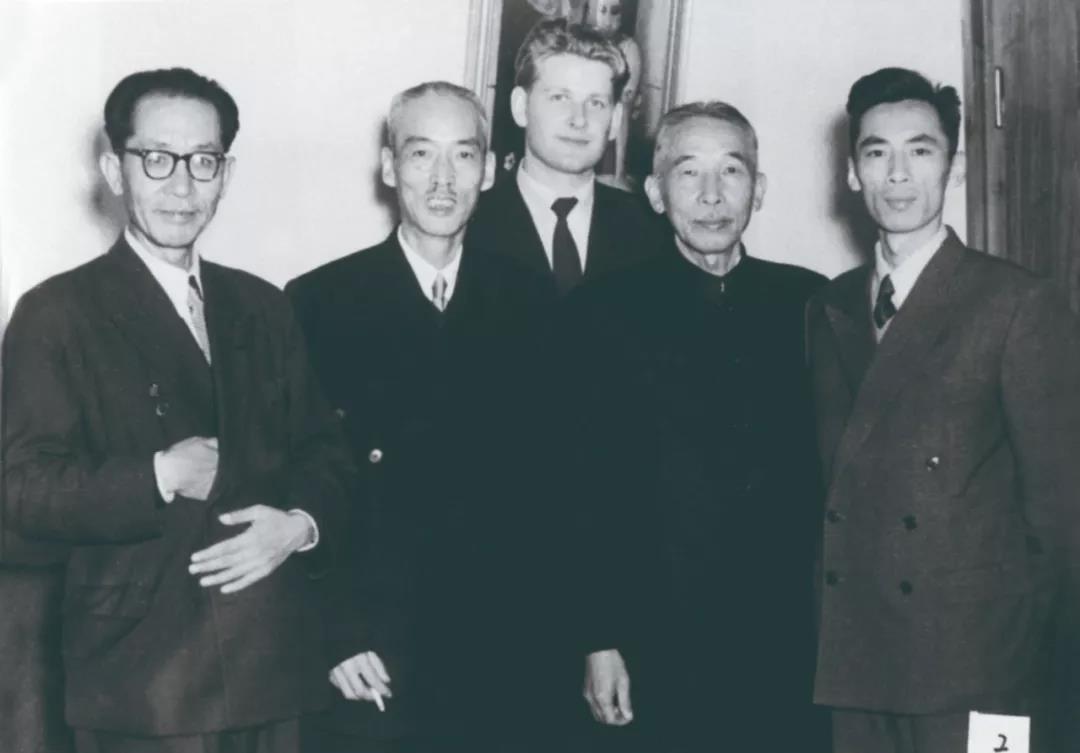 1955年,戴芳澜(左二)与丁颖(左四)当选东德农科院通讯院士
