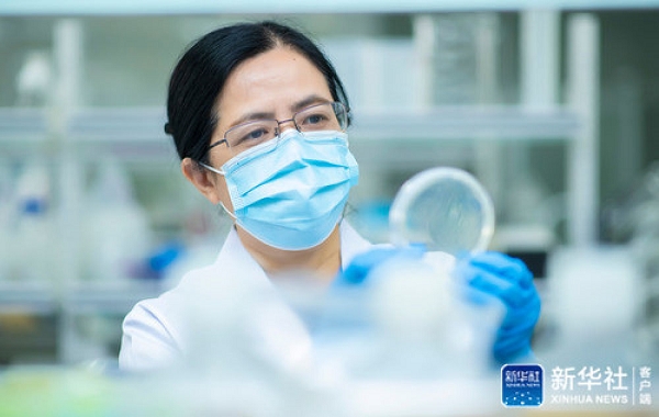 中国医学科学院病原生物学研究所研究员任丽丽在实验室(资料照片)。新华社发
