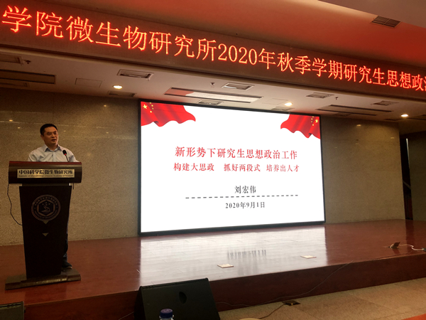 研究生思想政治工作是研究生培养不可缺少的重要组成部分,关系到培养什么样的人、如何培养人以及为谁培养人的根本问题。首先,李俊雄书记在会议上传达了院党建办公室关于进一步加强和改进研究所学生思想政治工作的新要求,希望党委团委等各级组织与研究生部和党建处等职能部门密切配合、加强规划,共同做好研究生的思想教育和政治引领。随后,所党委委员刘宏伟研究员为与会师生作了《新形势下研究生思想政治工作—构建大思政、抓好两段式、培养出人才》的专题报告。报告以“讲政治、筑底线”为出发点,围绕“成为什么样的人”的主线,介绍了新形势下我所的研究生思政工作特点和现状。在报告最后,刘老师结合目前疫情发展和国际局势,对我所研究生提出了新的要求,希望大家能够充分认识到自身的时代责任和使命担当,在不断提升专业技能和学术素养的同时,树立崇高的思想境界和远大的理想追求,努力成为又红又专、德才兼备、全面发展的中国特色社会主义合格建设者和可靠接班人。接下来,为加强研究生教育管理,研究生部在会议上强调了研究生返校后的在校管理和心理健康等注意事项,对研究生在疫情防控期间的总体表现给予了肯定。最后,钱韦所长在总结中强调了加强和改进研究生思想政治工作在造就德才兼备高层次人才、培养社会主义建设者和接班人、维护社会稳定和国家安全等方面的重要性,并结合研究所在此次科技攻关的表现,鼓励大家在掌握丰富知识的同时,锤炼锻造高尚品格,既要坚持底线思维,又要树立大局意识,将基础突破与应用研究紧密结合,坚持学术研究服务经济社会发展。