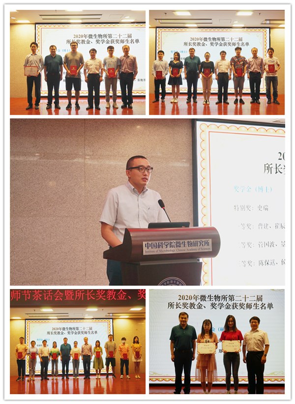 金秋九月,天高云淡。9月10日早晨,所领导、研究生部以及研究生会齐聚微生物所A座和F座大厅,为研究所老师们献上饱含感谢与祝福的鲜花,祝愿各位老师第36个教师节节日快乐。献花活动结束后,研究所在E301会议室举行了2020年教师节茶话会暨所长奖教金、奖学金颁奖仪式。党委书记、副所长李俊雄,副所长向华,党委副书记、纪委书记杨永峰与30余位老师共庆佳节。会议由研究生部副主任程浩主持。