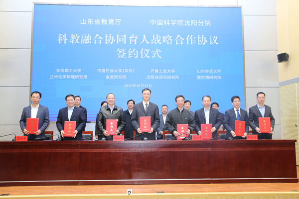 为进一步学习贯彻习近平总书记和李克强总理关于研究生教育工作的重要指示精神,探索和完善科研院所与高等院校之间的协同创新与人才联合培养机制,10月27日上午,中国科学院微生物研究所出席中科院沈阳分院与山东省教育厅的科教融合协同育人战略合作协议签约仪式,并与山东第一医科大学、山东师范大学和齐鲁工业大学等3所高校同时签约。微生物所所长钱韦和研究生部相关负责人员共同参加仪式。