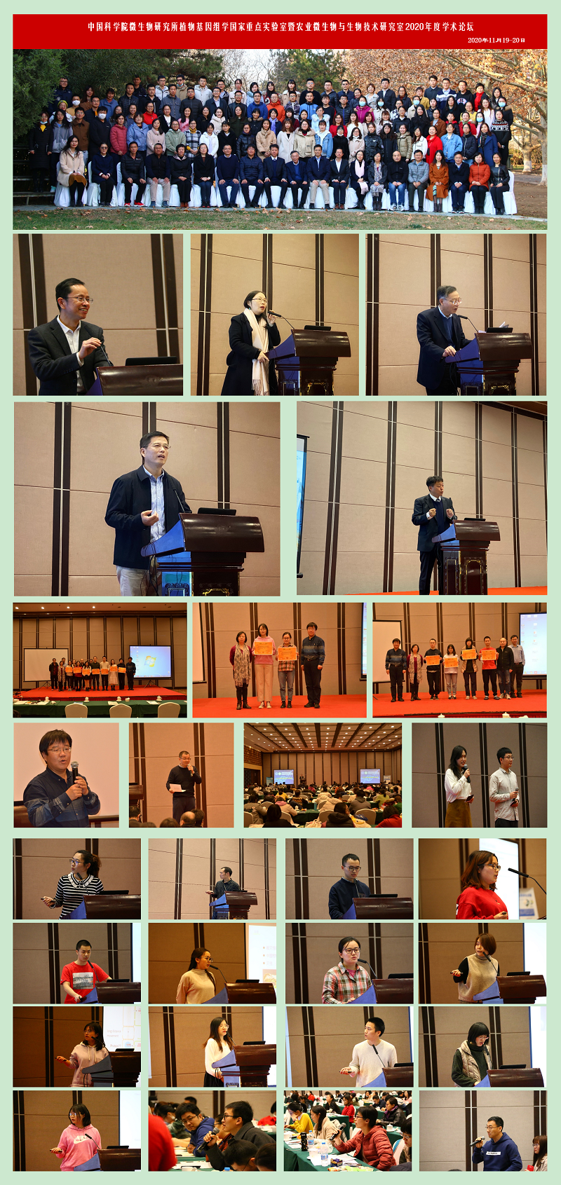 中国科学院微生物研究所植物基因组学国家重点实验室暨农业微生物与生物技术研究室(以下简称“农业室”)2020年度学术论坛于2020年11月19-20日召开。来自本室12个研究组的全体人员共150余人参加了此次会议。微生物研究所钱韦所长和科技战略规划与重大项目处喻亚静处长也参加了本次会议。会议还邀请了来自南京农业大学的王源超教授和中土良田的董事长刘君一先生为本次论坛做了特邀报告。