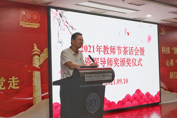 钱韦所长向所有的导师表示节日的祝贺,同时对新近加入微生物所的年轻导师表示了热烈欢迎。他对研究所现阶段导师和研究生的整体情况进行了介绍,对导师们在繁重科研创新任务的压力下,出色完成了教书育人的任务,培养出众多出色的科技人才表示衷心感谢。钱韦所长希望所有导师,以研究所优秀资深导师们为榜样,学习他们严谨的治学态度和诲人不倦的风范,培养出更多不同领域的领军人才,并祝福大家桃李天下、春晖满园。