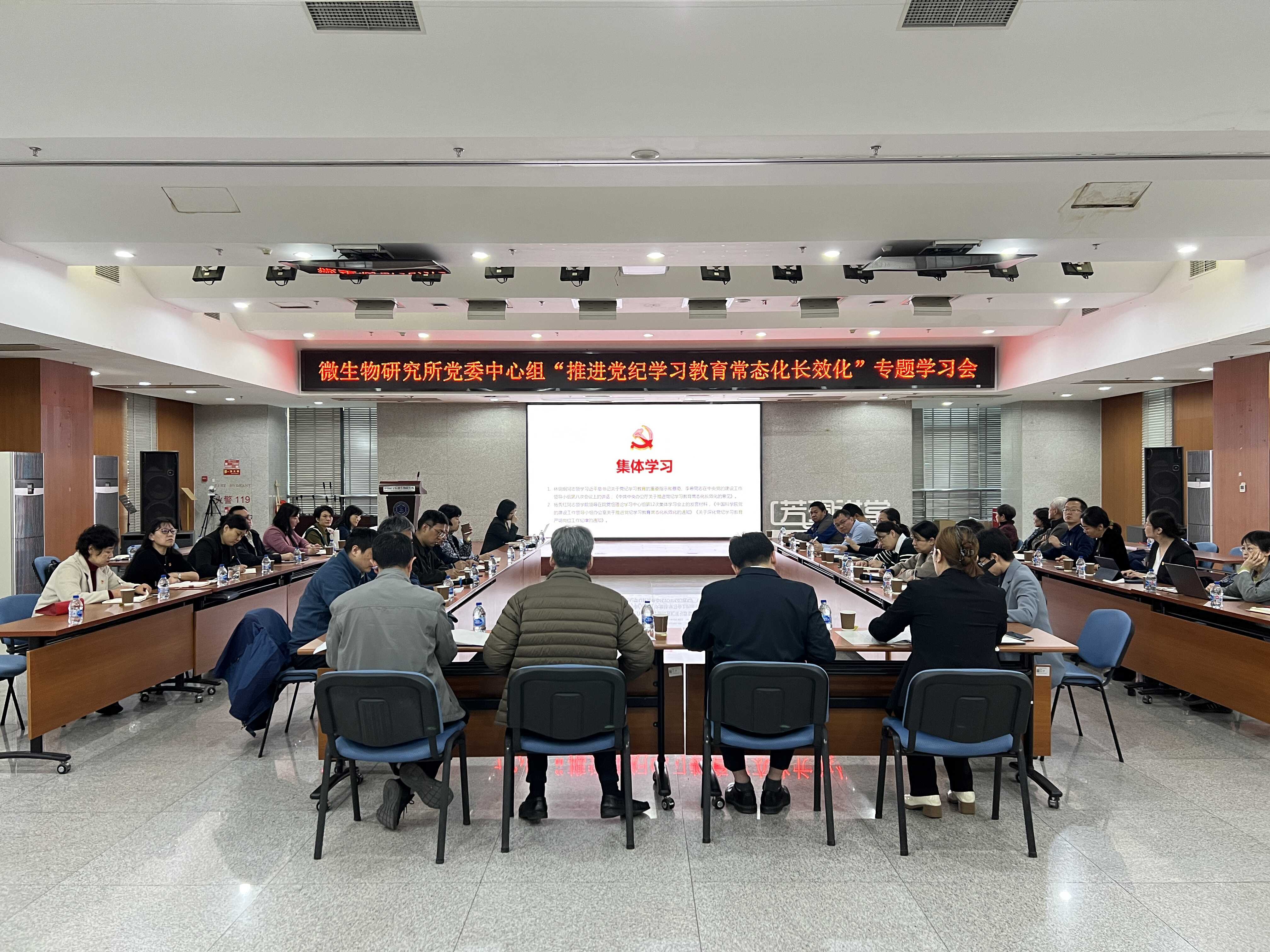 为巩固深化党纪学习教育成果,深入研讨推进党纪学习教育常态化长效化思路举措,10月24日上午,微生物所召开党委理论学习中心组“推进党纪学习教育常态化长效化”专题学习扩大会。所领导班子成员、党委委员、纪委委员、党支部书记、各部门负责人共计30余人参加会议。院党组巡视组有关同志列席会议。党委书记林明炯同志主持会议。