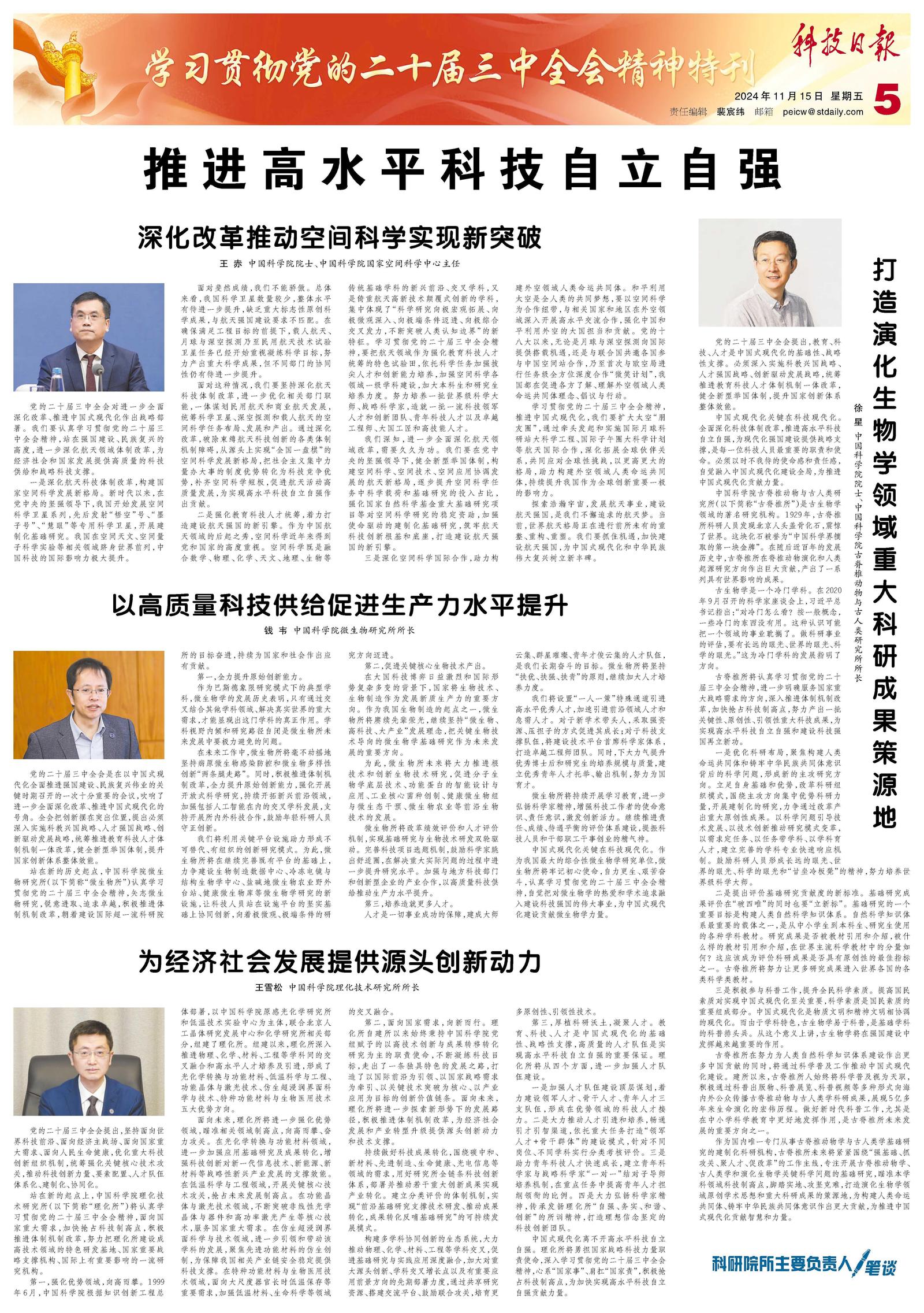 党的二十届三中全会是在以中国式现代化全面推进强国建设、民族复兴伟业的关键时期召开的一次十分重要的会议,吹响了进一步全面深化改革、推进中国式现代化的号角。全会把创新摆在突出位置,提出必须深入实施科教兴国战略、人才强国战略、创新驱动发展战略,统筹推进教育科技人才体制机制一体改革,健全新型举国体制,提升国家创新体系整体效能。