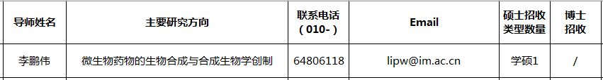 目前新增接收2024年推免生报名的导师信息如下,请已经取得所在高校推免指标且有意申请的学生阅读我所8月3日发布的《中国科学院微生物研究所接收2024年推荐免试研究生及直博生报名通知》:https://www.im.cas.cn/yjs2018/zsxx/ssyjszs/202308/t20230803_6854663.html,将相关材料同时发送到导师邮箱和研究生部邮箱enroll@im.ac.cn。因报名时间较为紧张,建议与导师本人电话联系。