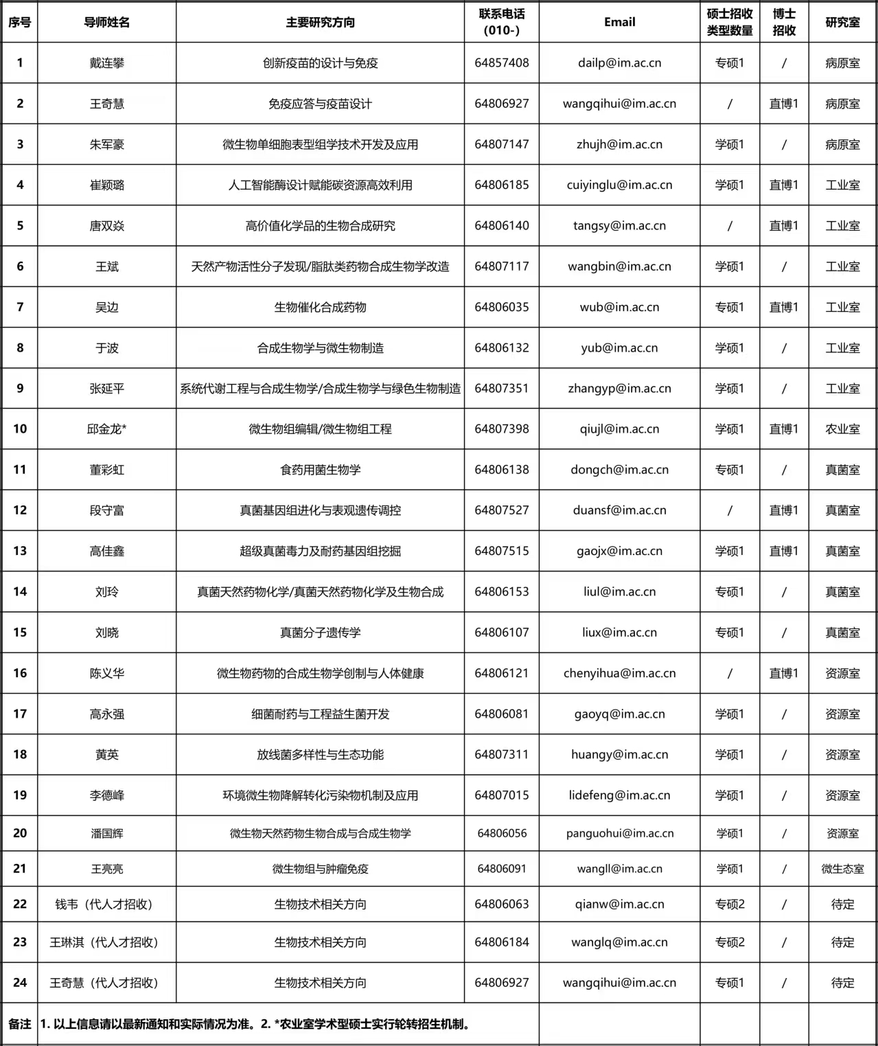 中国科学院微生物研究所接收2026年推荐免试研究生及直博生报名通知