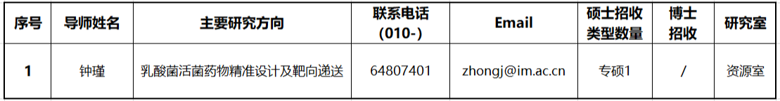 目前新增接收2026年推免生报名的导师信息如下,请已经取得所在高校推免指标且有意申请的学生阅读研究所8月4日发布的《中国科学院微生物研究所接收2026年推荐免试研究生及直博生报名通知》:https://www.im.cas.cn/yjs2018/zsxx/ssyjszs/202508/t20250804_7900771.html,将相关材料同时发送到导师邮箱和研究生部邮箱enroll@im.ac.cn,并完成扫码报名。因报名时间较为紧张,建议与导师本人电话联系。