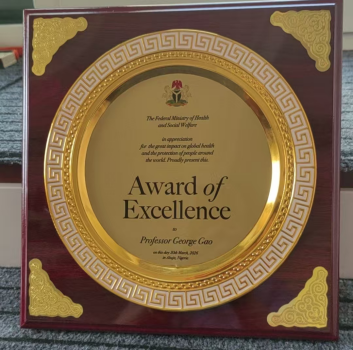 In recognition of his outstanding contributions to global public health and infectious disease control, Academician Gao Fu was presented with the Award of Excellence by the Federal Ministry of Health and Social Welfare of Nigeria.