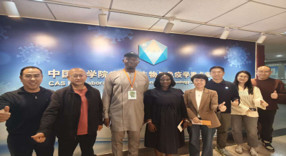 On April 15, 2026, Dr. Victor Nwaoba ITUMO, Director of the International Department of the Nigerian Ministry of Foreign Affairs, visited the Institute of Microbiology, Chinese Academy of Sciences. He was received by Vice Director Qihui Wang of IMCAS, and Executive Director Junhao Zhu of CEEID. During the tour of Academician George F. Gao's laboratory, Prof. Haitao Hu and Prof. Jianxun Qi introduced CEEID's ongoing efforts to strengthen cooperation mechanisms for youth scientist development between China and Nigeria. They emphasized the necessity of advancing future international science and technology collaborations in emerging infectious diseases and public health. The visit laid a positive foundation for deepening bilateral scientific partnerships.