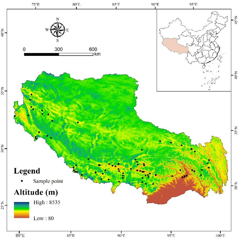 图1. 西藏主要粮食产区采样点位图