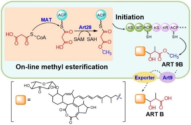 图1:甲酯化在线修饰起始聚酮化合物ART的生物合成