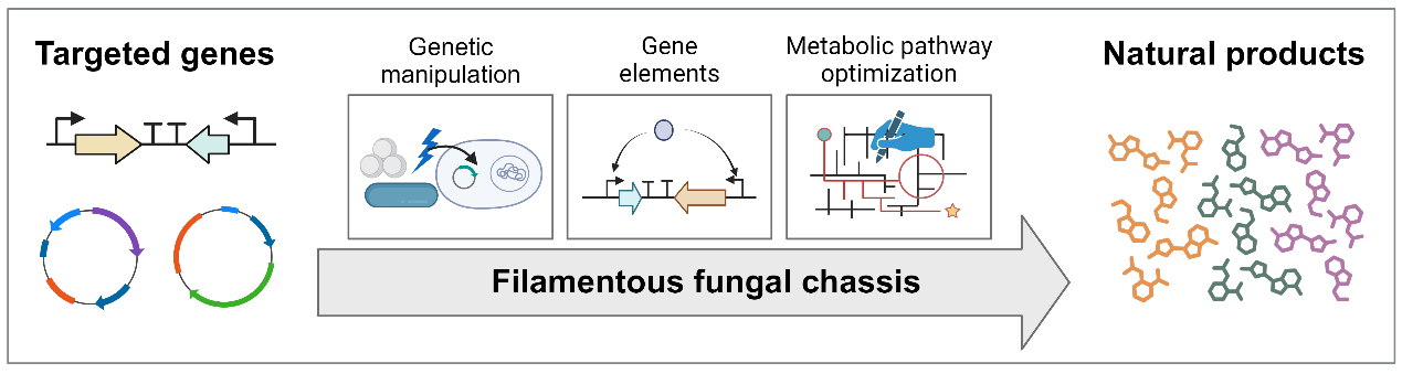 基于性能卓越的微生物底盘细胞进行高价值化学品的绿色生物制造,已经成为合成生物学领域的研究热点之一。10月28日,中国科学院微生物研究所尹文兵研究团队在Bioresource Technology在线发表了题为“Developing filamentous fungal chassis for natural product production”的综述文章,讨论了丝状真菌底盘开发和应用的最新研究进展。